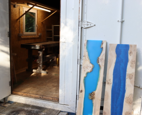 Vor den Toren Hamburgs am Rande der Lüneburger Heide entstehen in der kleinen Waldwerkstatt von GIG Holzkunst individuelle Rivertable oder auch Flusstische.